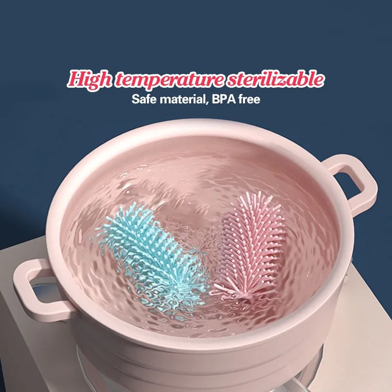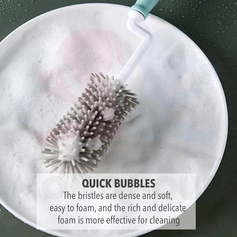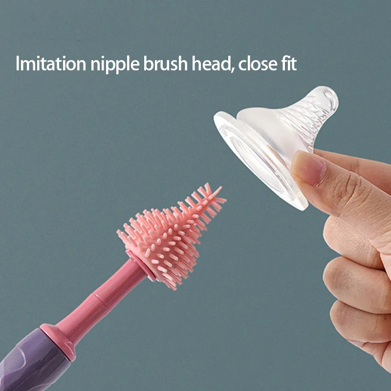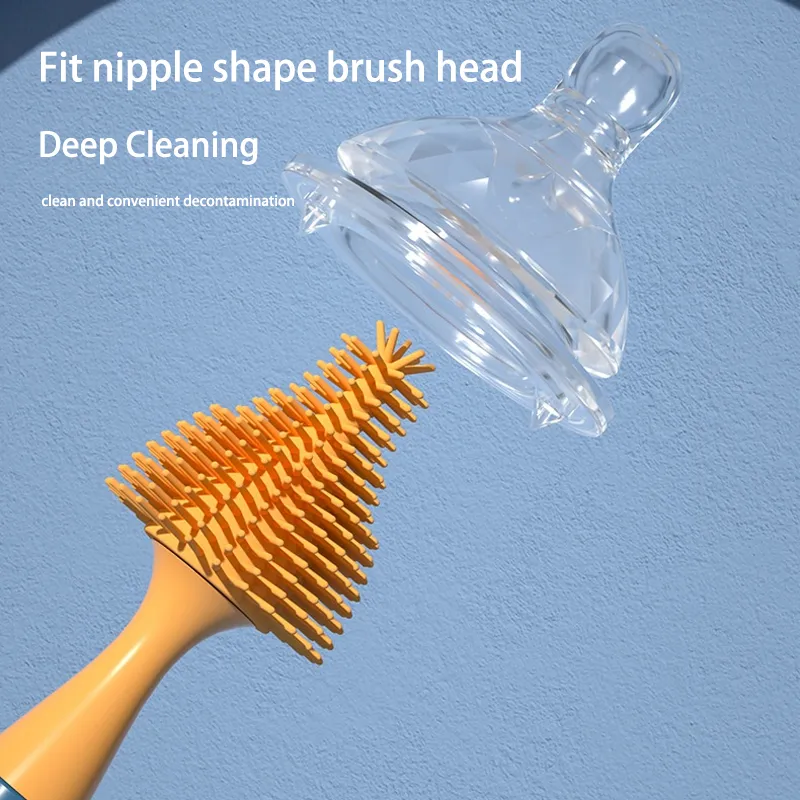 - Soft and moderate silicone bristles can clean stubborn stains, milk stains, and will not scratch the bottle. The mini nipple brush can clean the space that is difficult to reach with the nipple effortlessly. Keeping feeding bottles clean is vital for babies' health and hygiene.