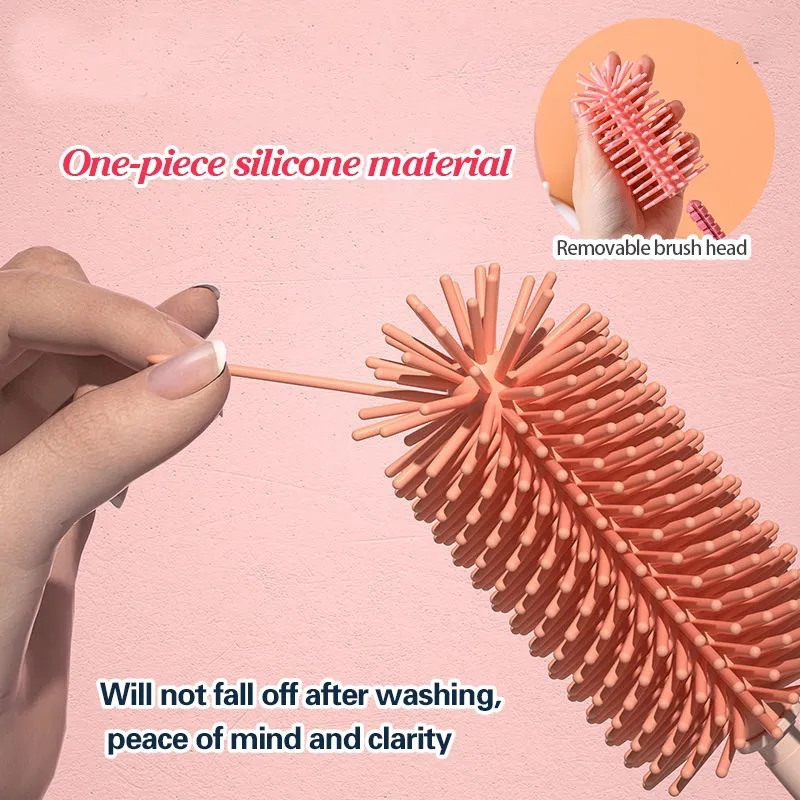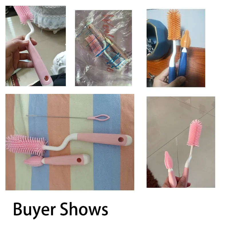 The brush head of all brushes are made of food-grade silicone , which environmentally friendly and durable. It also have very soft silicone bristles are easier to bend and clean corners, and the silicone material is more durable. Use the silicone brush to keep straws, tableware, bottles, wine glasses, sports water bottles, baby bottles, thermos bottles, breast pumps, kitchen utensils and other sanitary clean.