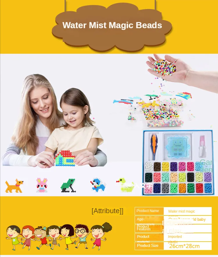 1000 Pcs/box DIY Water Spray Magic Beads Handmade Toy Set Children's Color Crystal Beads Puzzle Craft Kit Gift Variety Bean Toys