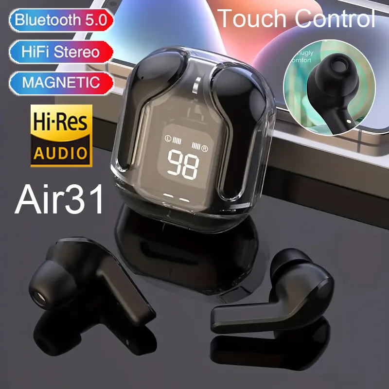 TWS Air31 Bluetooth Earphone Bluetooth 5.0 Wireless Earburds HiFi 9D Stereo Sound Waterproof Noise Reduction Low Latency Build-in Mic Bluetooth Earphone Touch Control Fon Telinga Bluetooth 蓝牙耳机 无线耳机