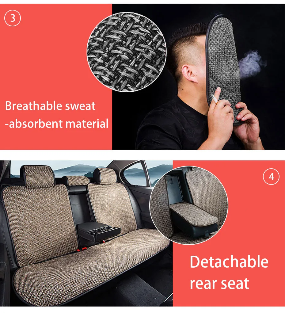 SEAMETAL Car Seat Cover Integrated Linen Seat Cushion Four Seasons Universal Five Seats Covers Full Set Auto Accessories