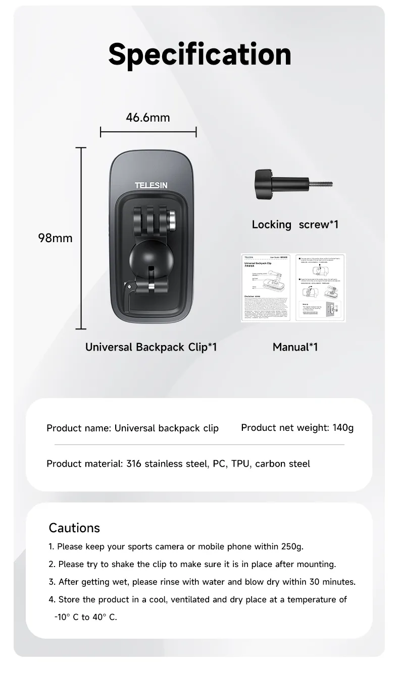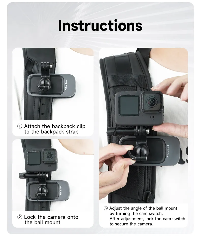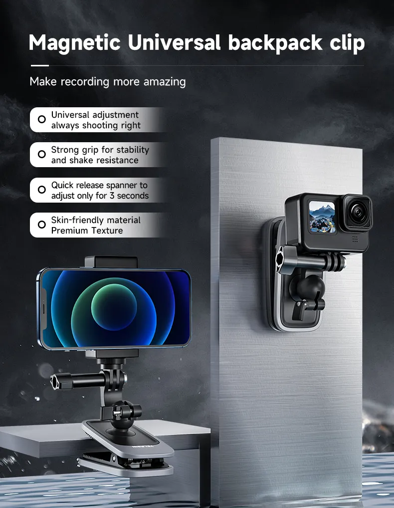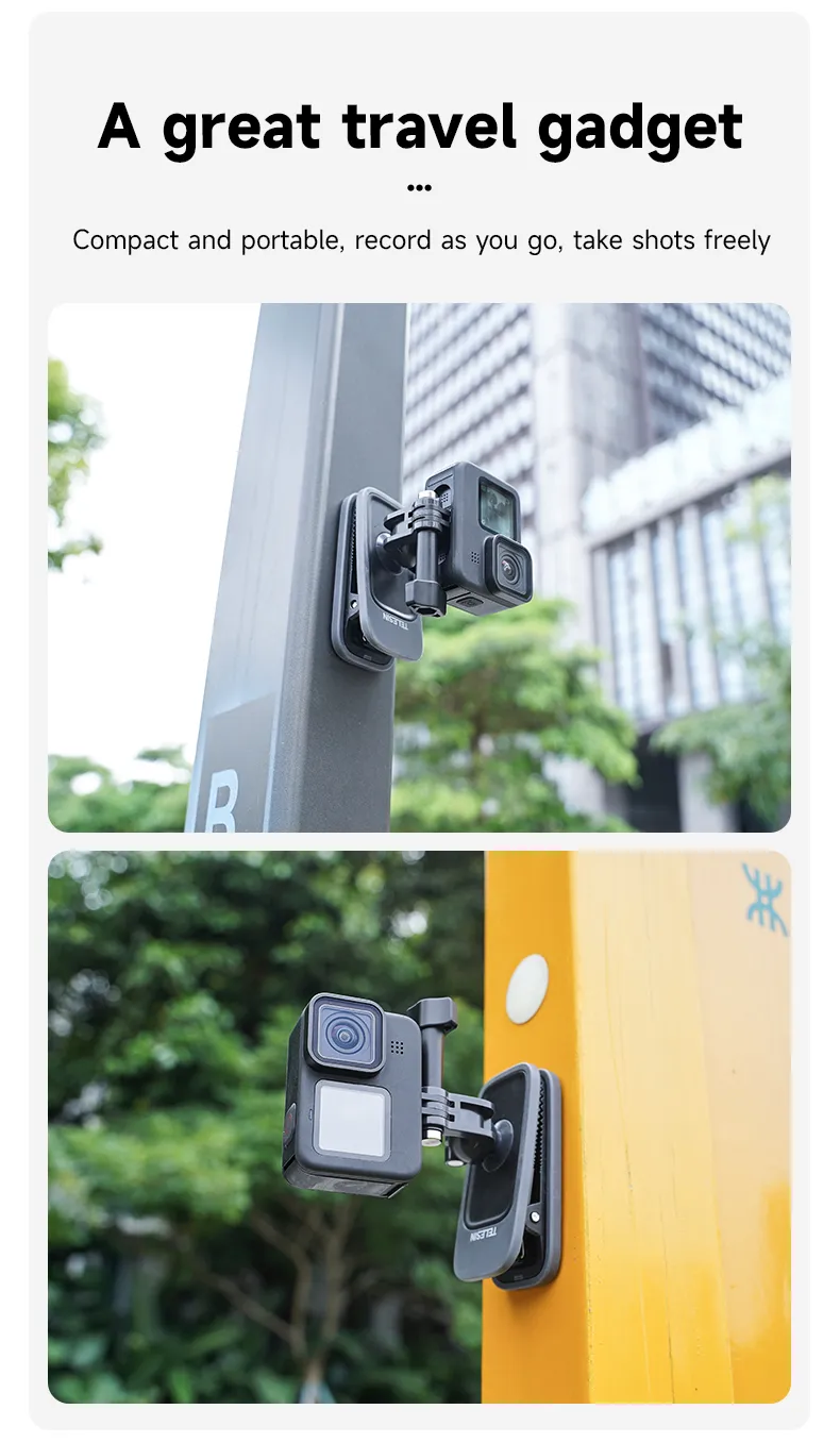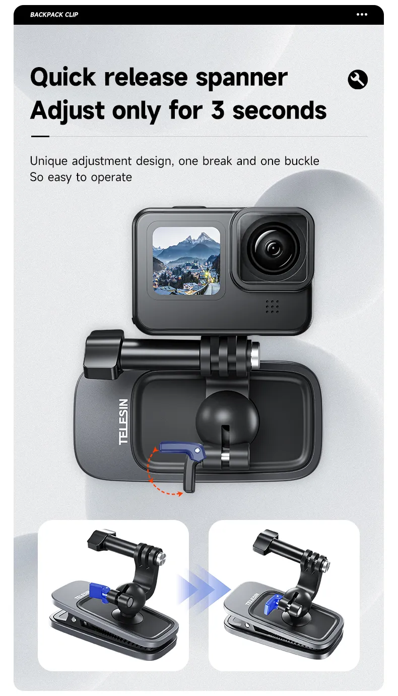 The TELESIN 360° Rotation Magnetic Backpack Clip Clamp Mount is an essential accessory for action camera enthusiasts.