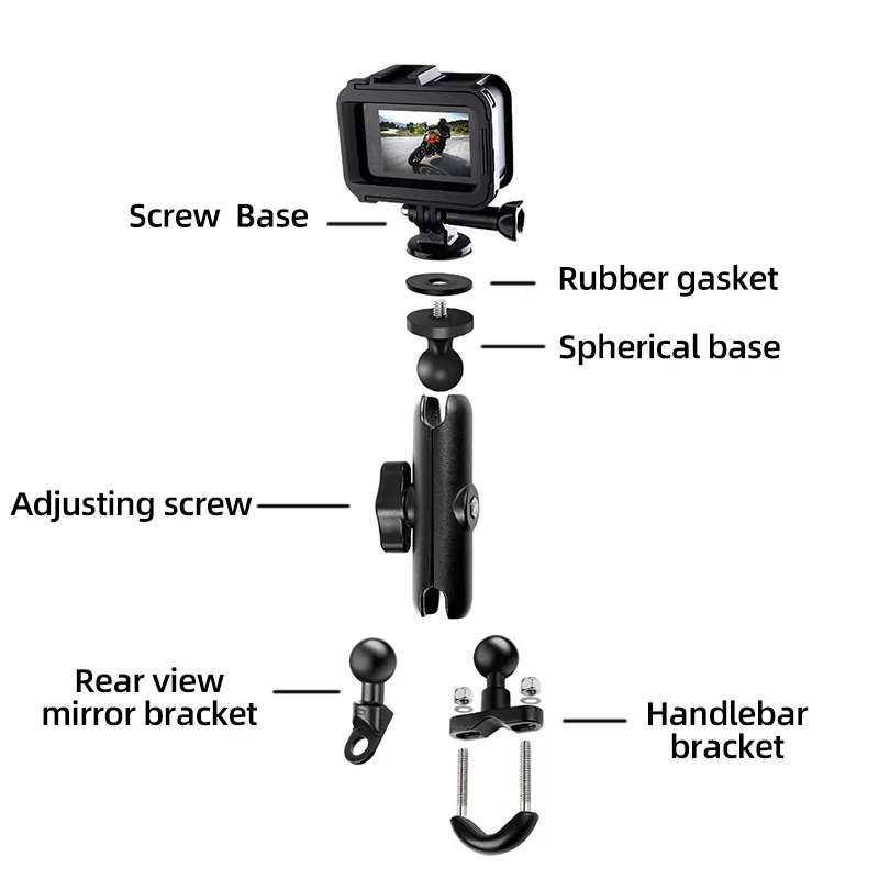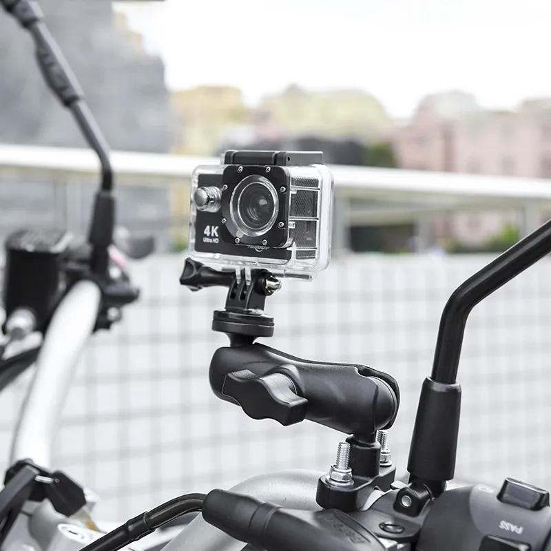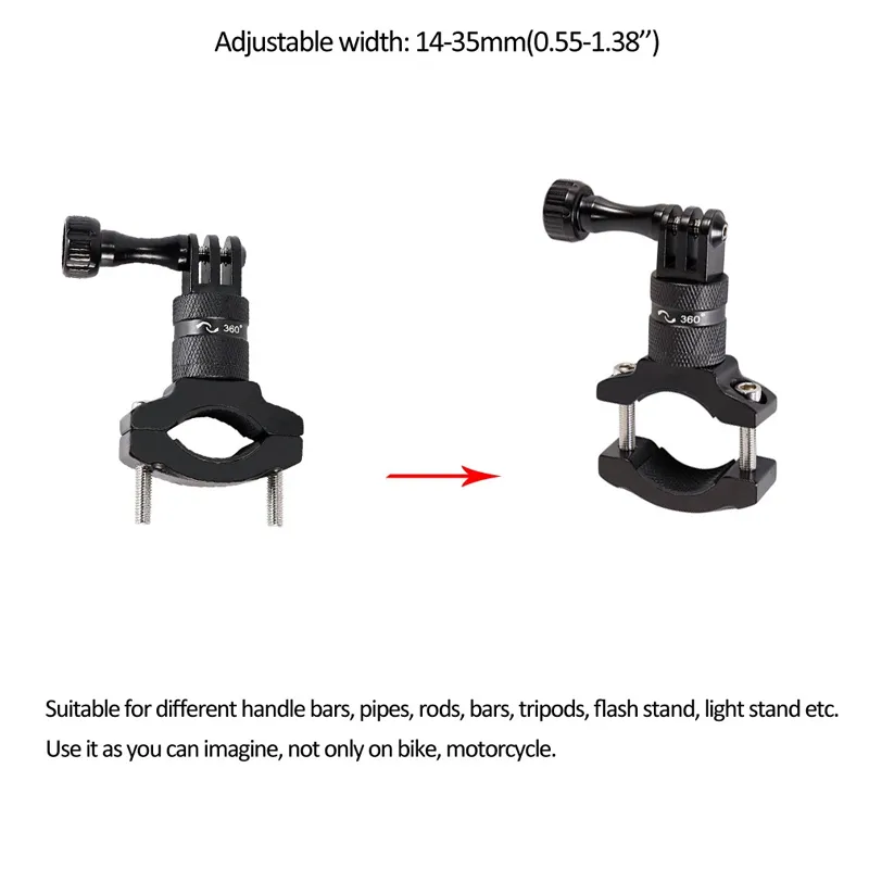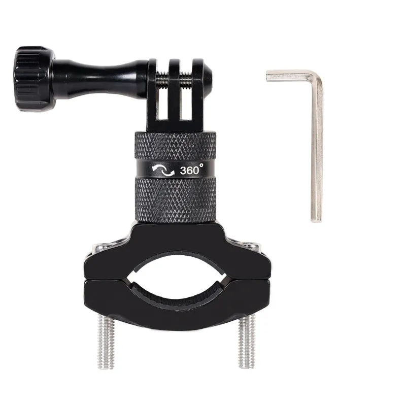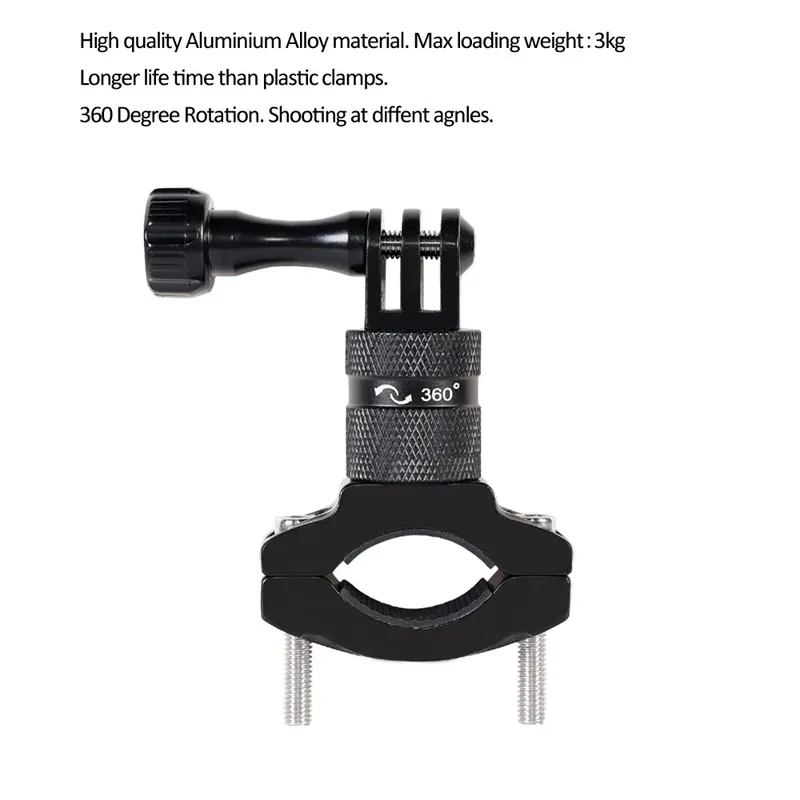 The 360° Motorcycle Holder Bracket is designed for action camera enthusiasts seeking versatility and stability.