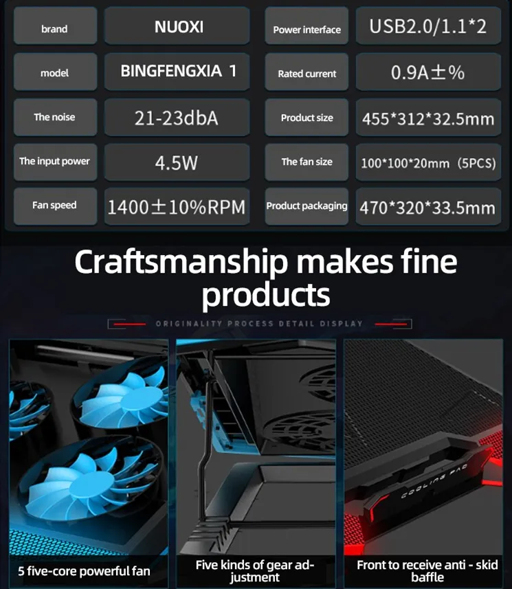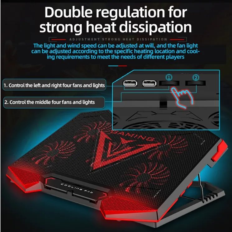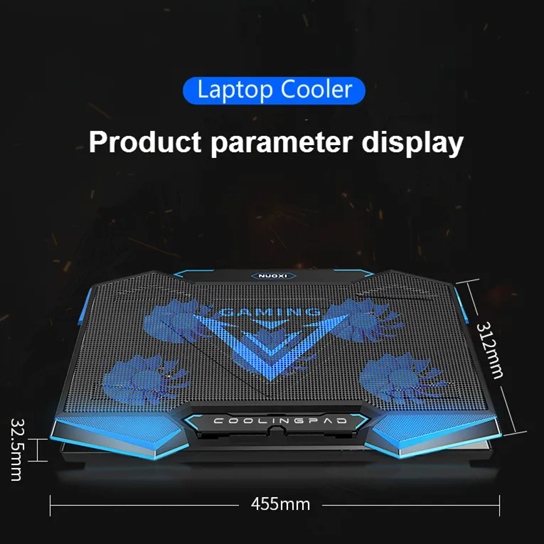 NUOXI Gaming Laptop Cooler 5 Fans Laptop Cooling Pad Adjustable laptop stand Dual USB LED Backlit Notebook Cooler