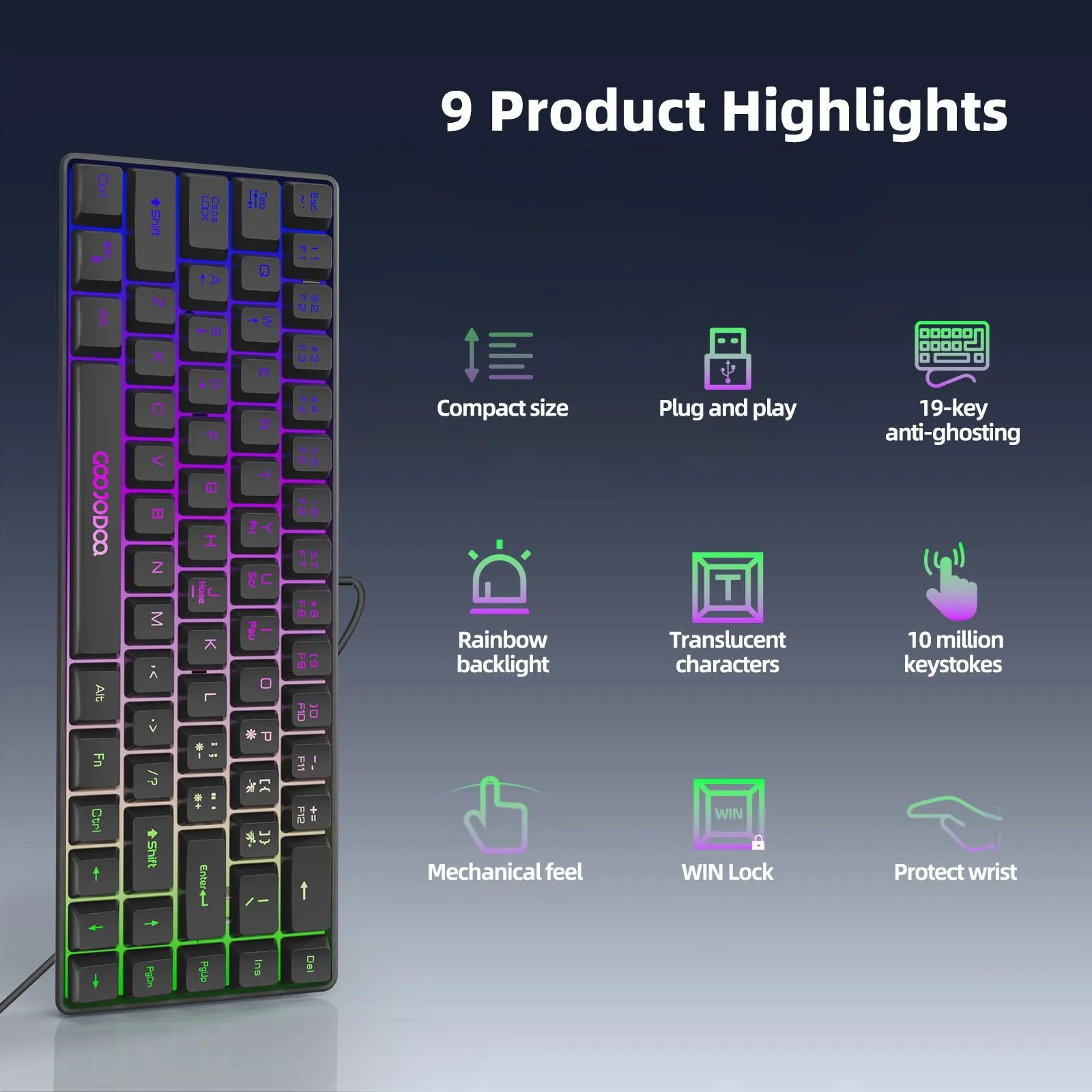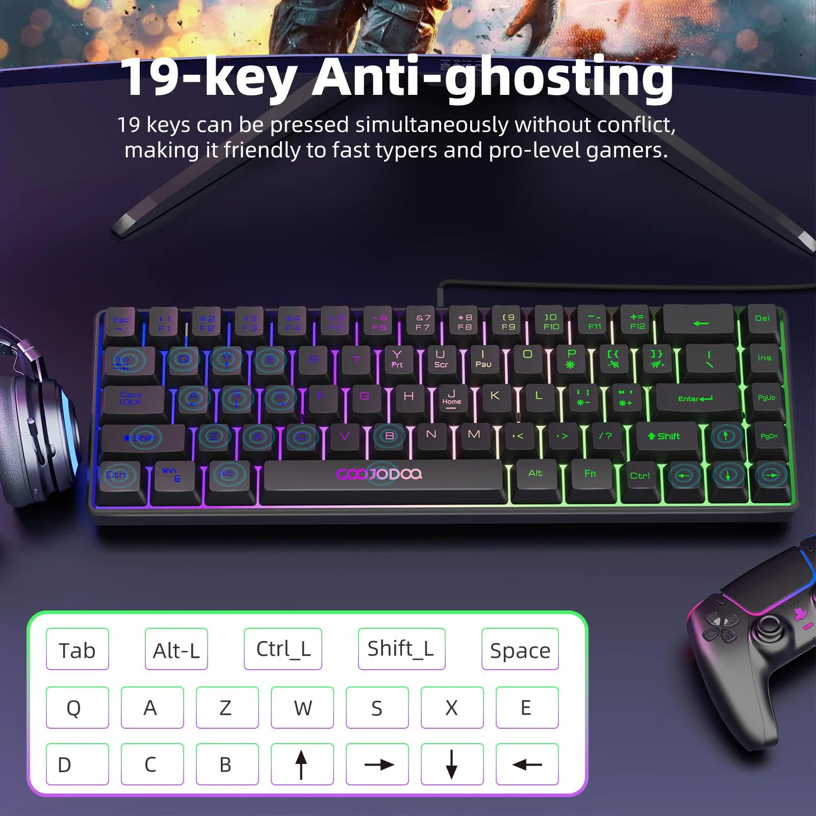 Compact 68-key Layout: The 68-key layout perfectly balances functionality and size. Subtracting a numeric keypad area, this mini keyboard saves 35% of valuable desktop space compared with the 108-key keyboard while still keeping all essential keys for gaming and daily tasks. Four non-slip rubber pads keep the keyboard firmly in place.
