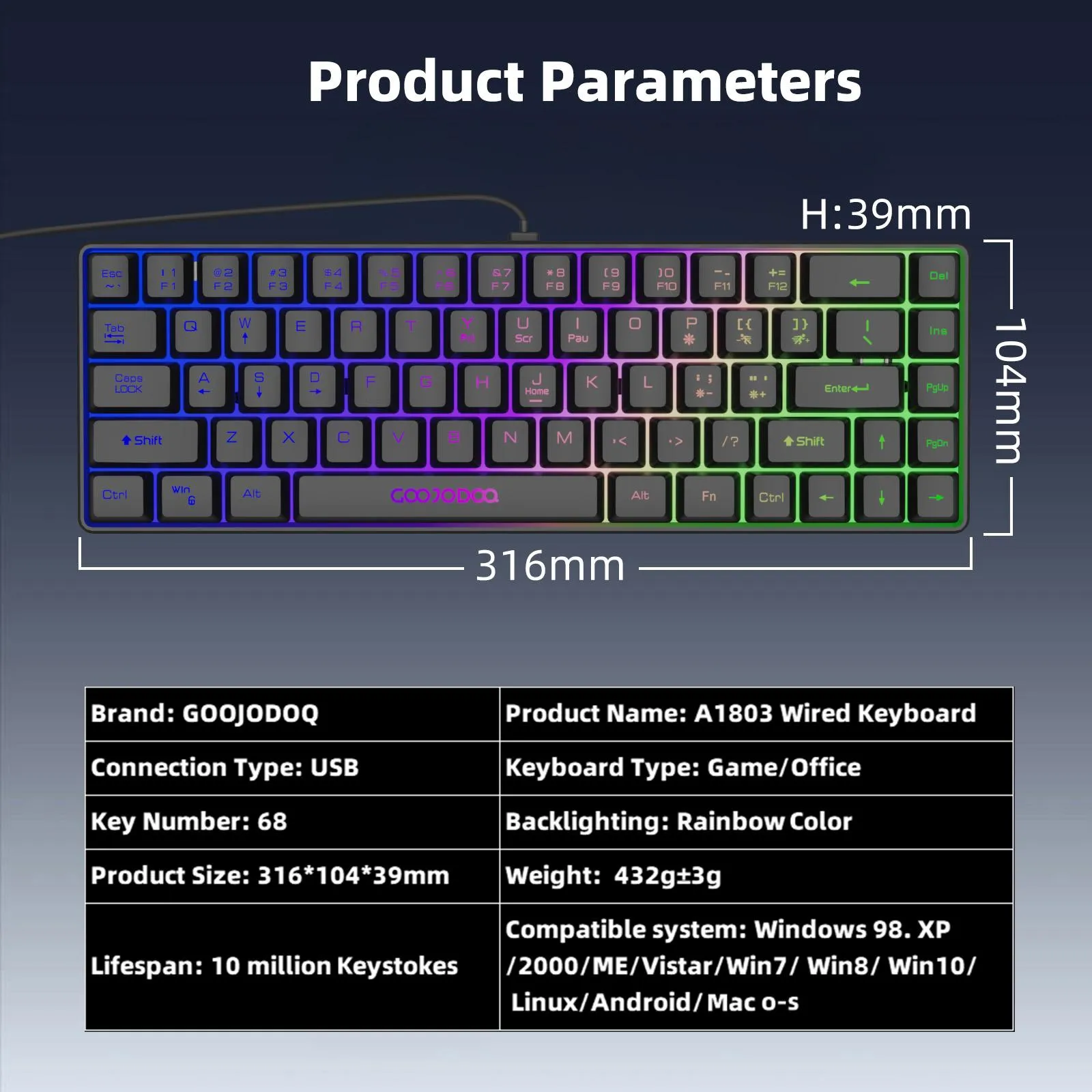 Keserasian Luas Merentas Pelbagai Sistem: Tidak perlu risau tentang had sistem. Papan kekunci padat berfungsi dengan lancar dengan Windows 98/XP/2000/ME/Vista/7/8/10, Linux, Android dan I-OS—sempurna untuk pengguna dengan berbilang peranti atau platform.