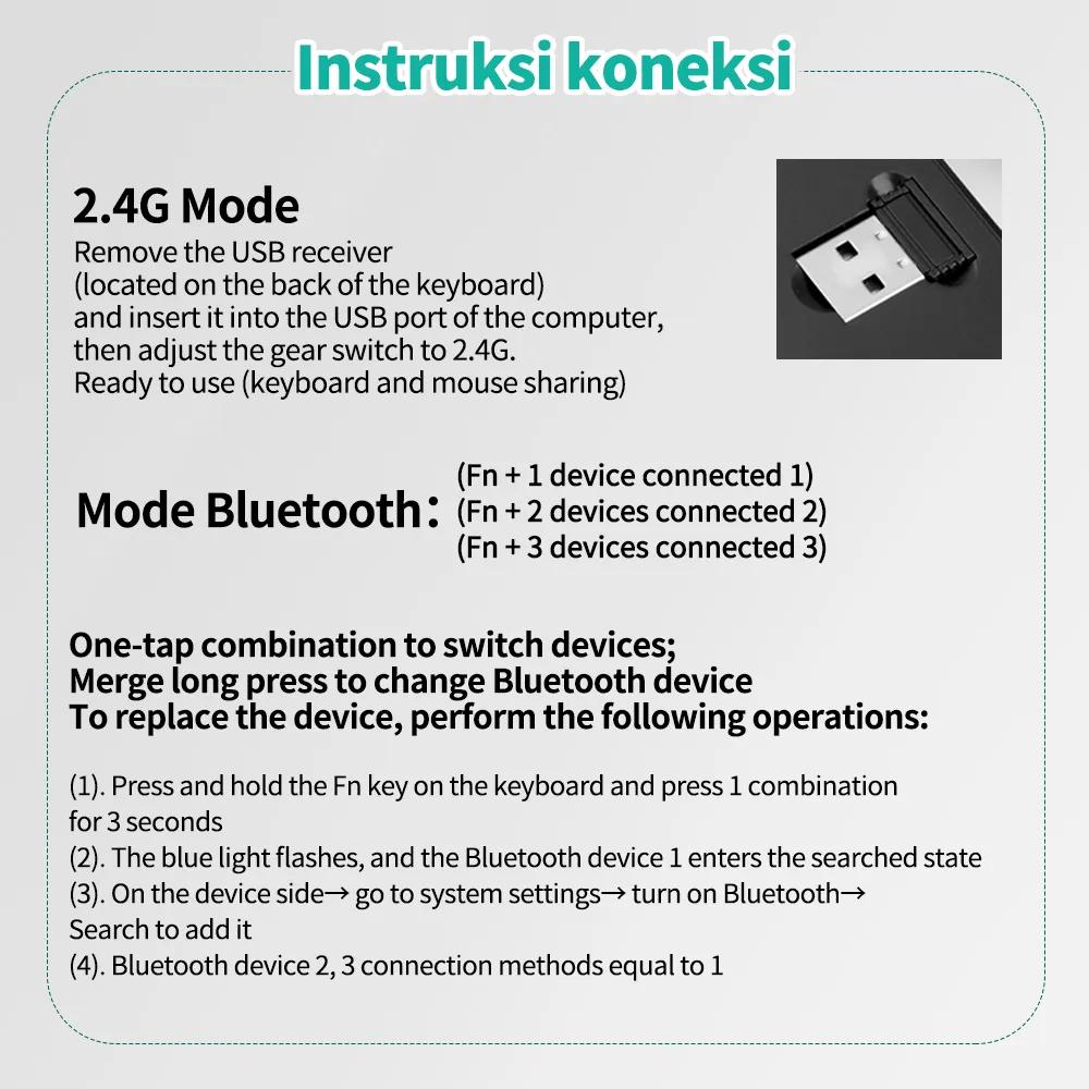 (Fn+1device connected 1) Bluetooth mode:(Fn+2device connected 2)(Fn+3 device connected 3)