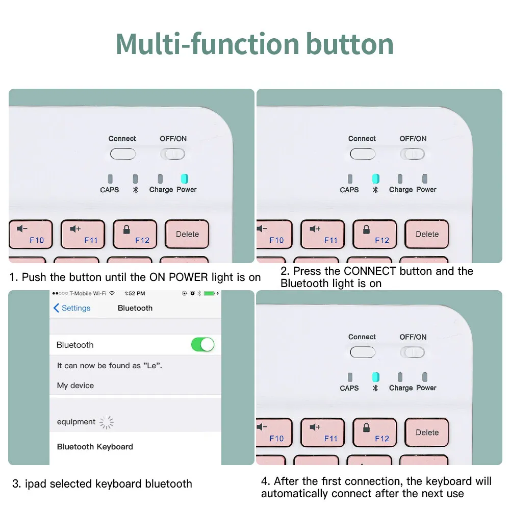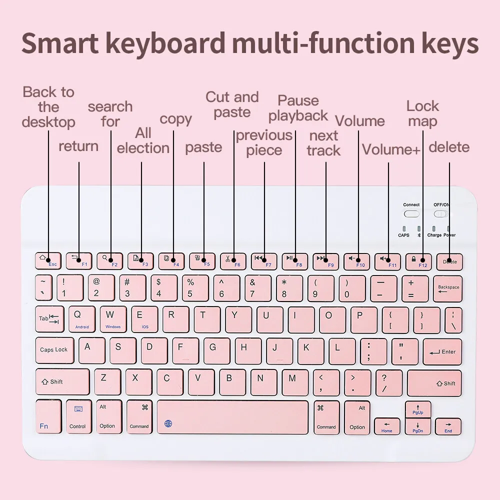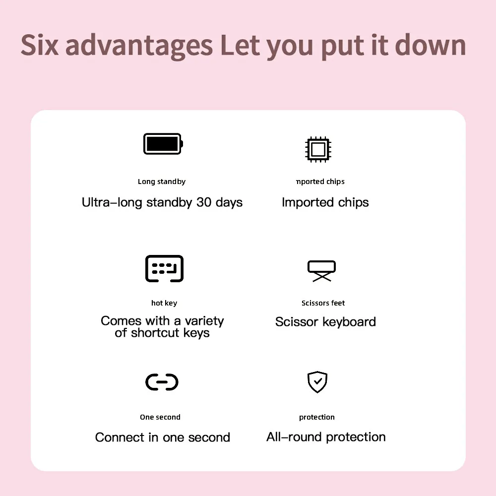 1: Applicable equipment, tablet PC, iPad 2: Bluetooth: V4.0, effective distance of 10 meters 3: Standby time: 30 days 4: Continuous working time: 70-100 hours 5: Charging time: 2-4 hours 6: Lithium battery capacity: 200mha 7: Button life: 500 million times 8: Tablet support: foldable, PC material.