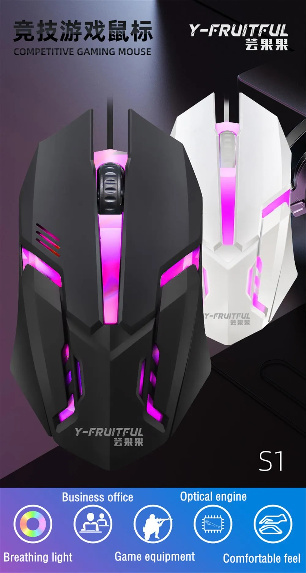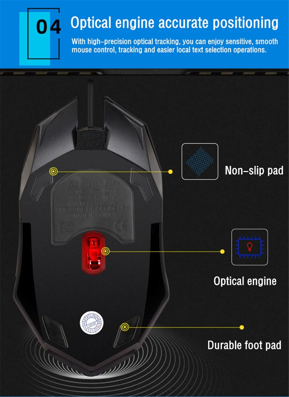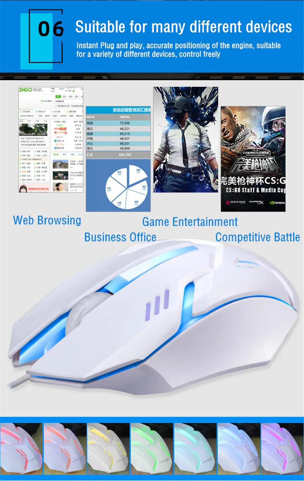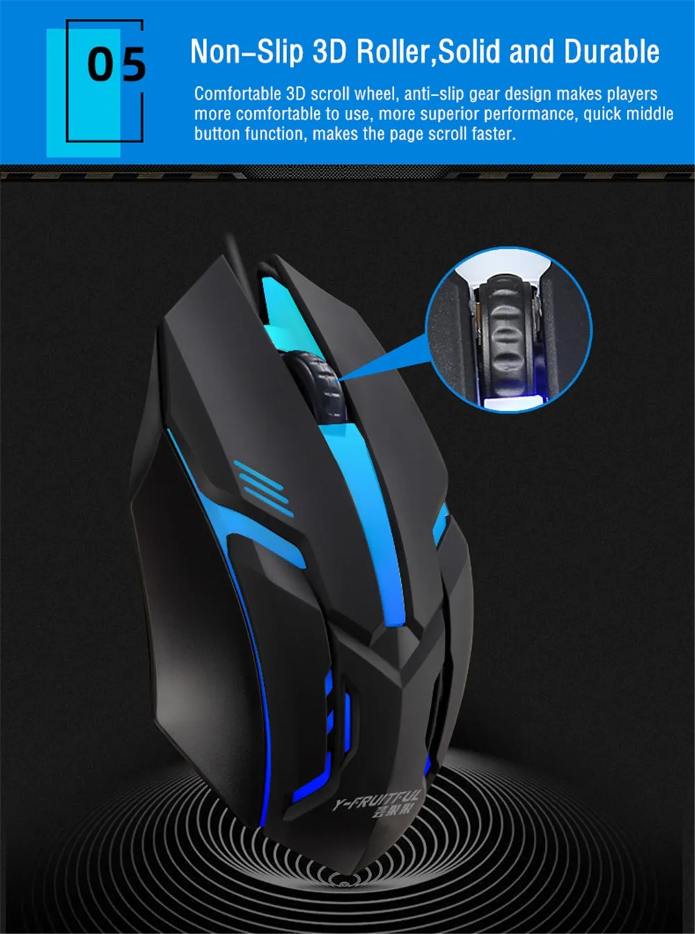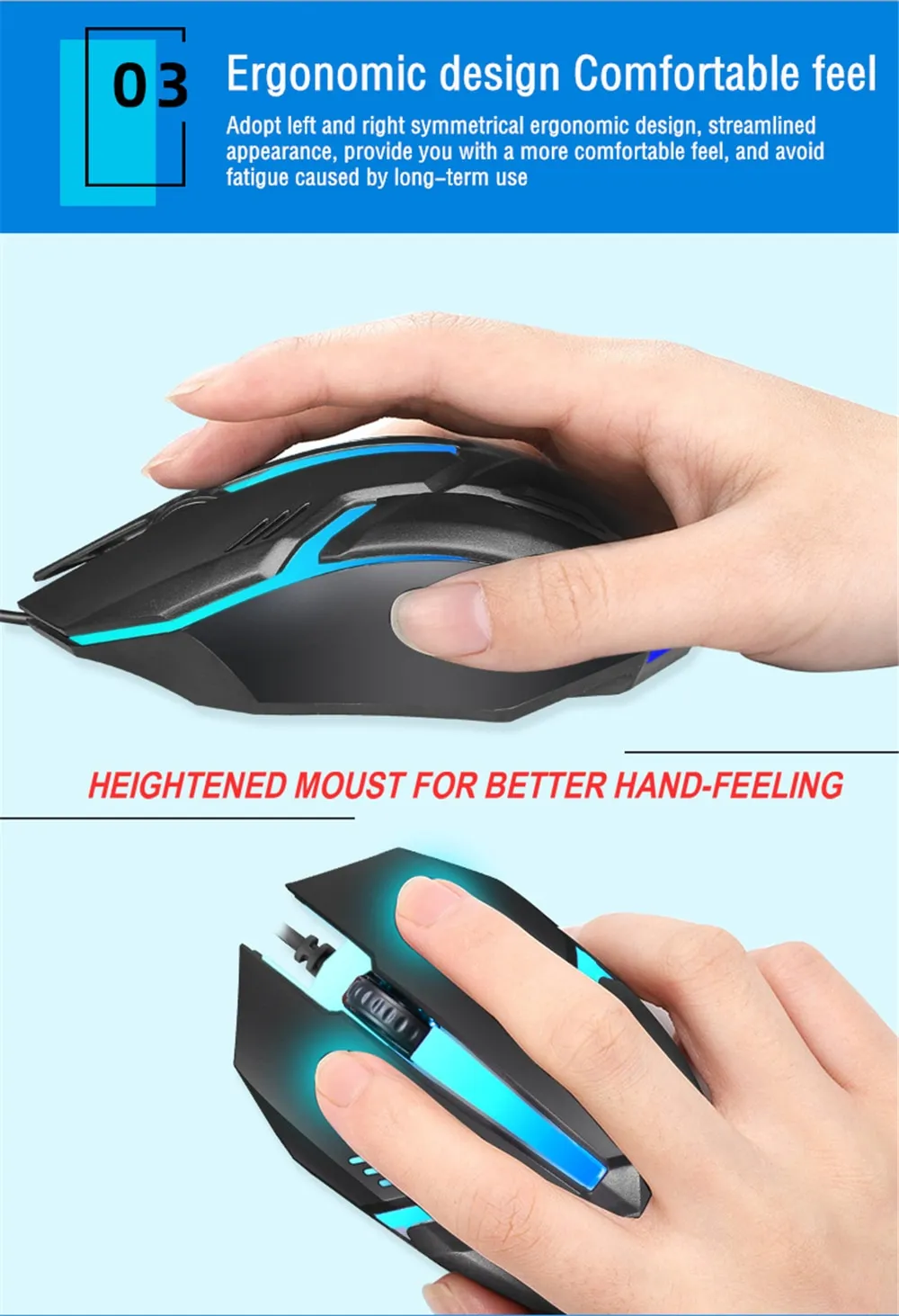 1. Wired gaming mouse, strong applicability, feel good.