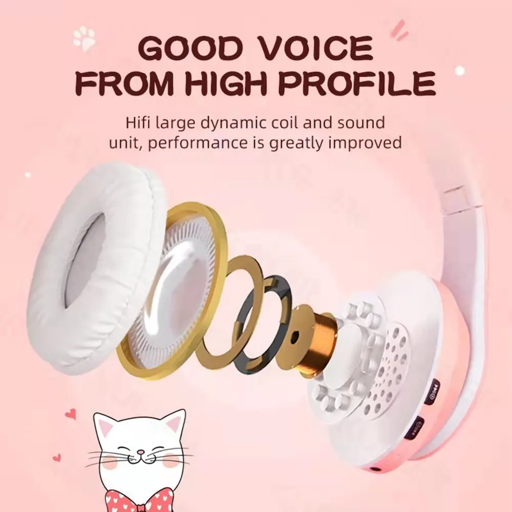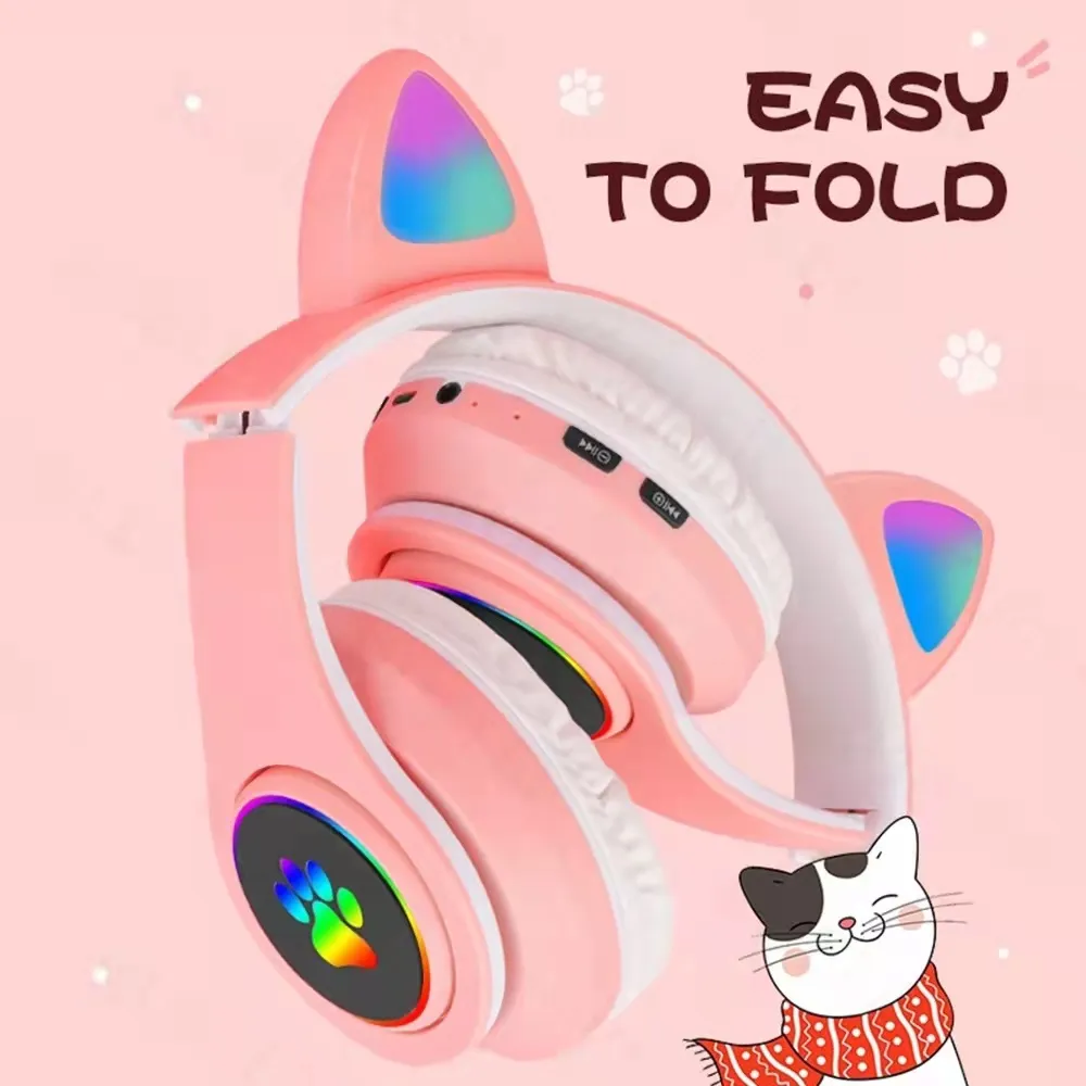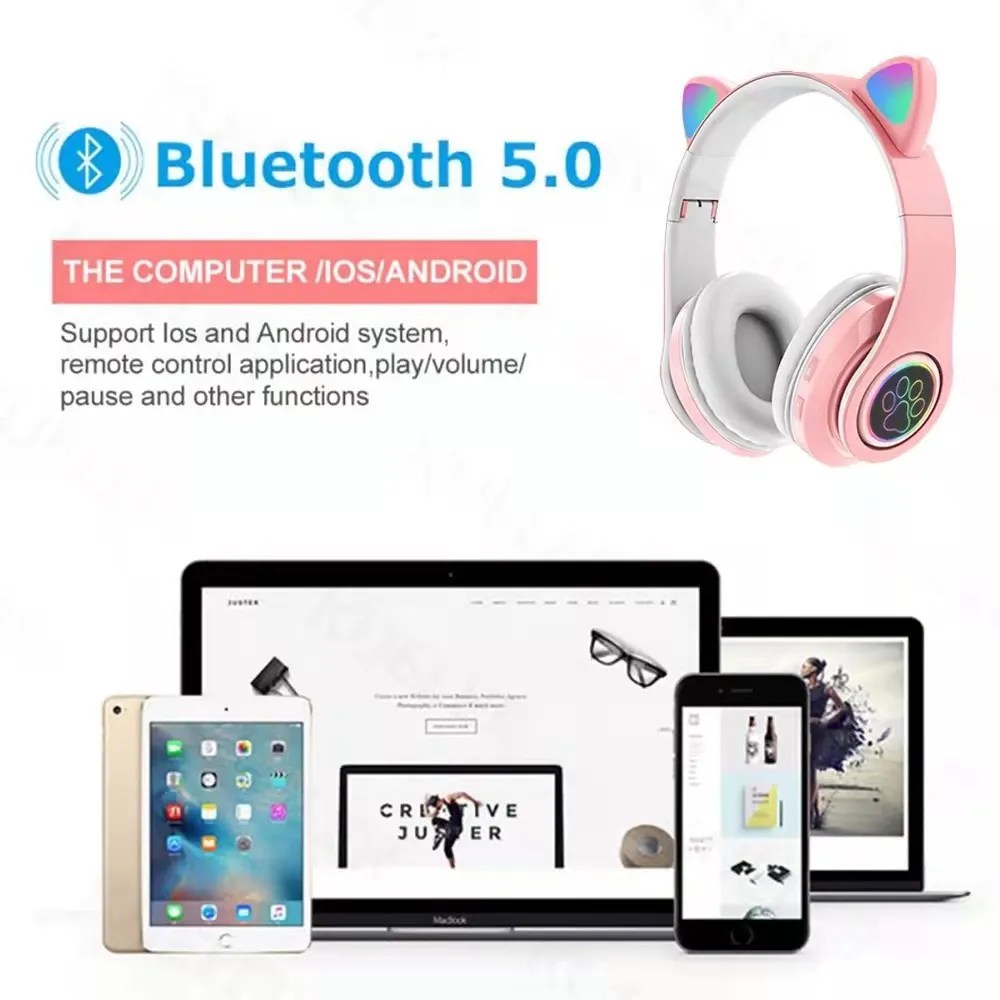 -LED Flashing Cat Ear Comfortable wear and Foldable Design: With ergonomic design and ultra-soft ear cups, IHAO B39 Bluetooth headphones provide a comfortable around-ear fit. Foldable design convenient you taking music along with you wherever you go.