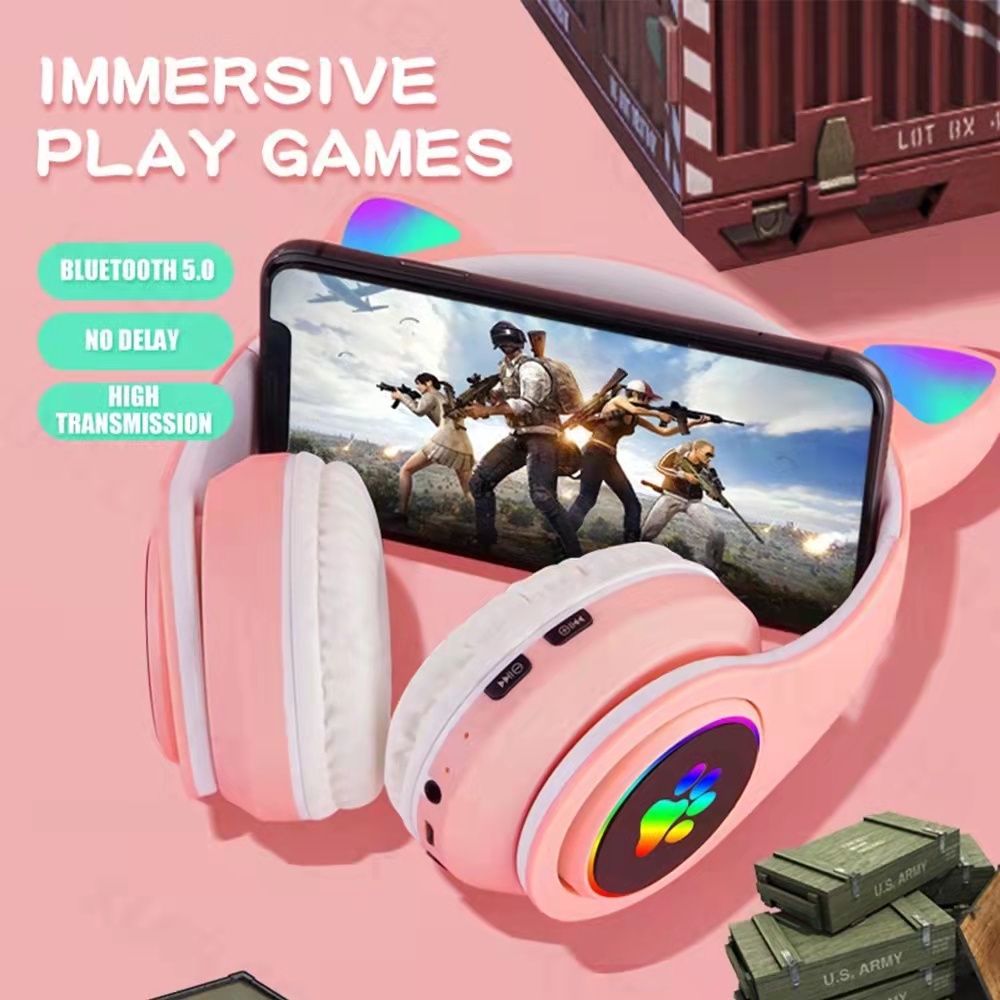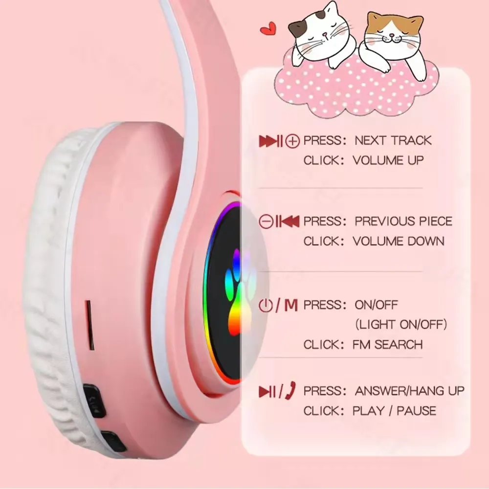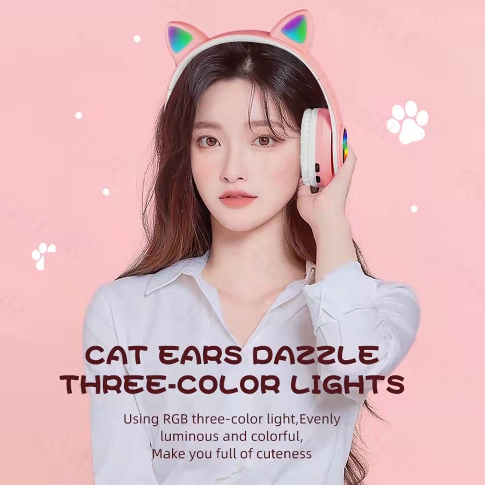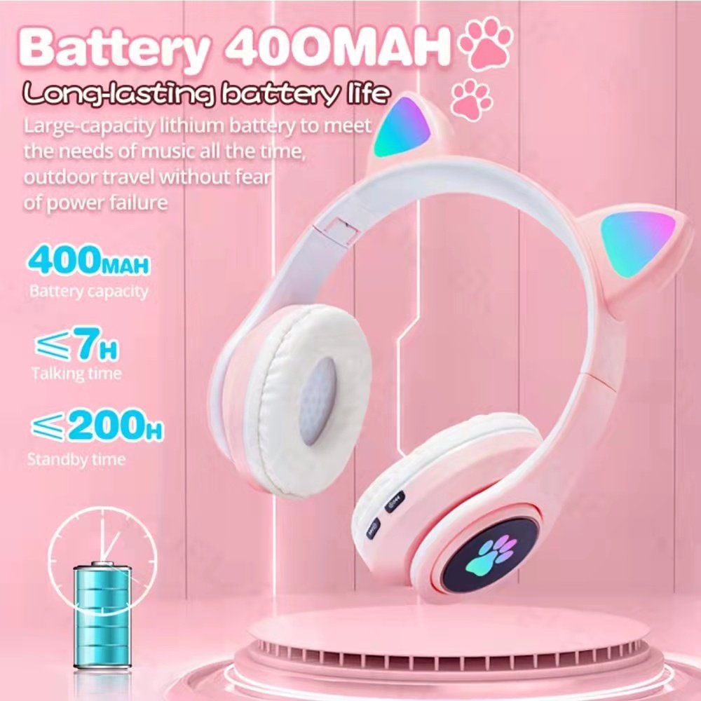-LED Flashing Cat Ear Comfortable wear and Foldable Design: With ergonomic design and ultra-soft ear cups, IHAO B39 Bluetooth headphones provide a comfortable around-ear fit. Foldable design convenient you taking music along with you wherever you go.