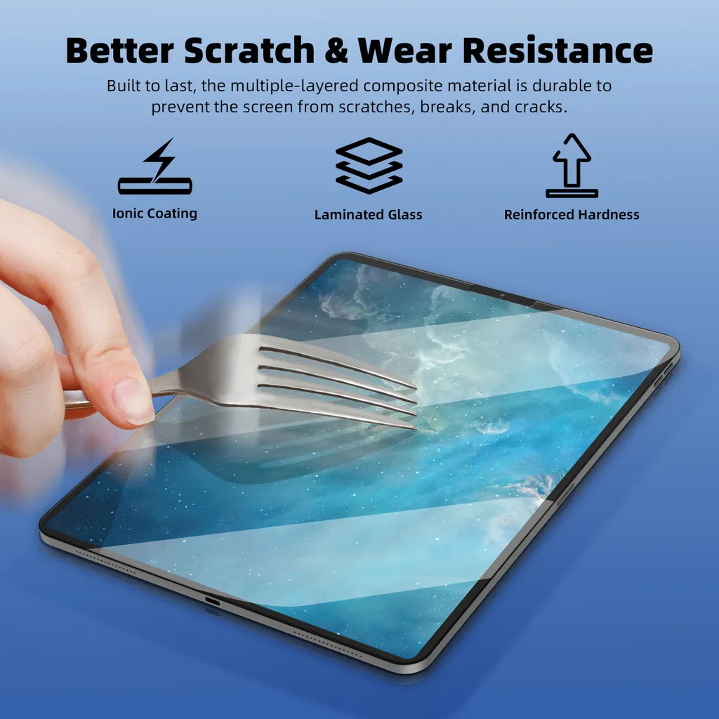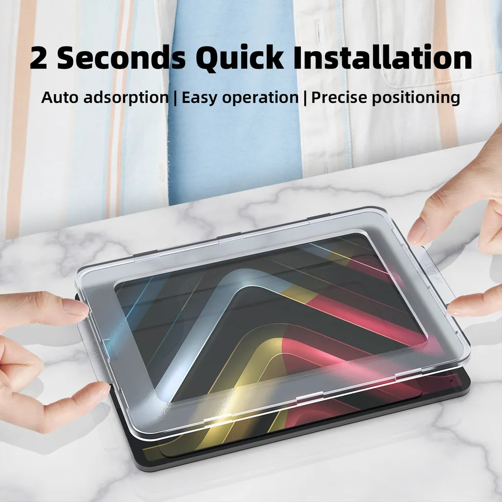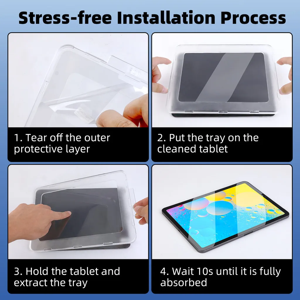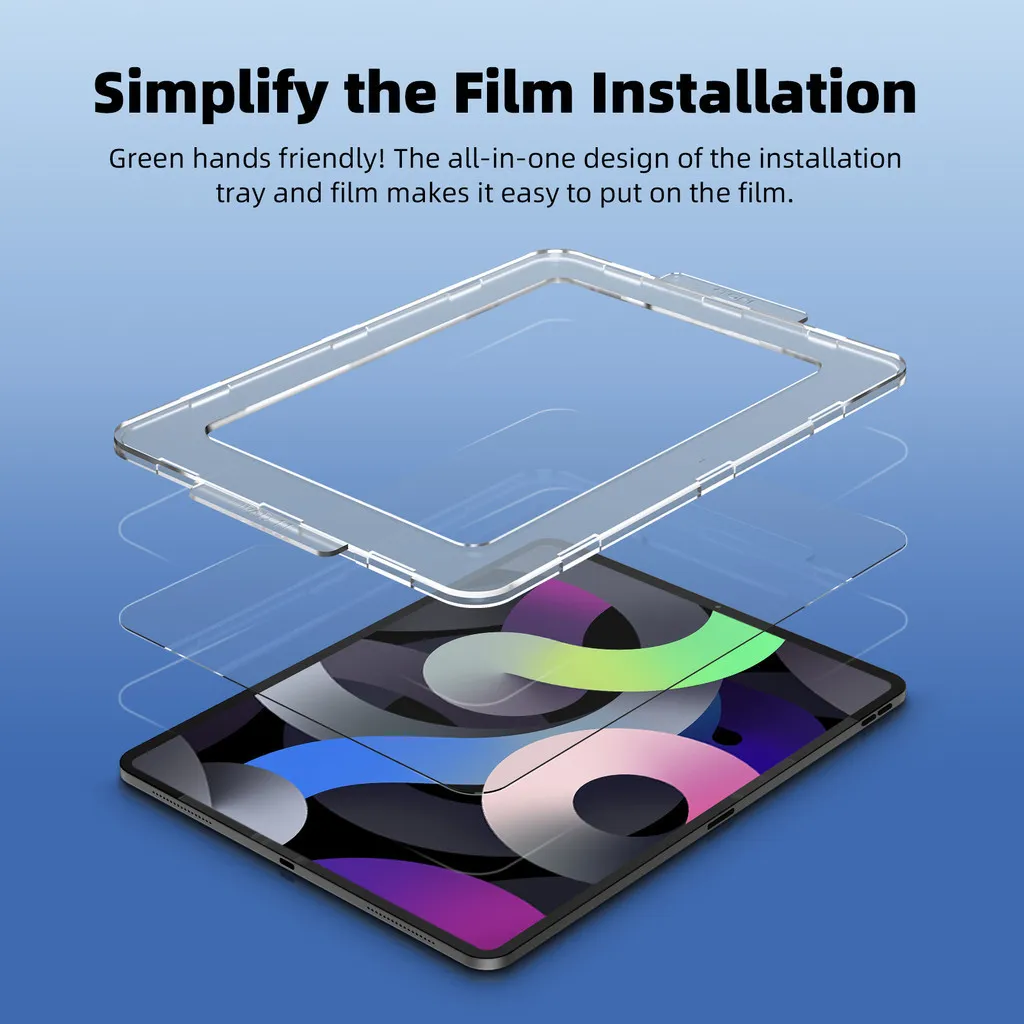 【2S Fast Accurate Installation】Install the film with the help of a positioning tray that can be quickly aligned with the iPad. After extracting the tray, it will automatically absorb it on the iPad screen precisely to achieve a better effect of removing air and dust that can cause edges to wrap and bubbles. Even green hands can be easily done in 4 steps.