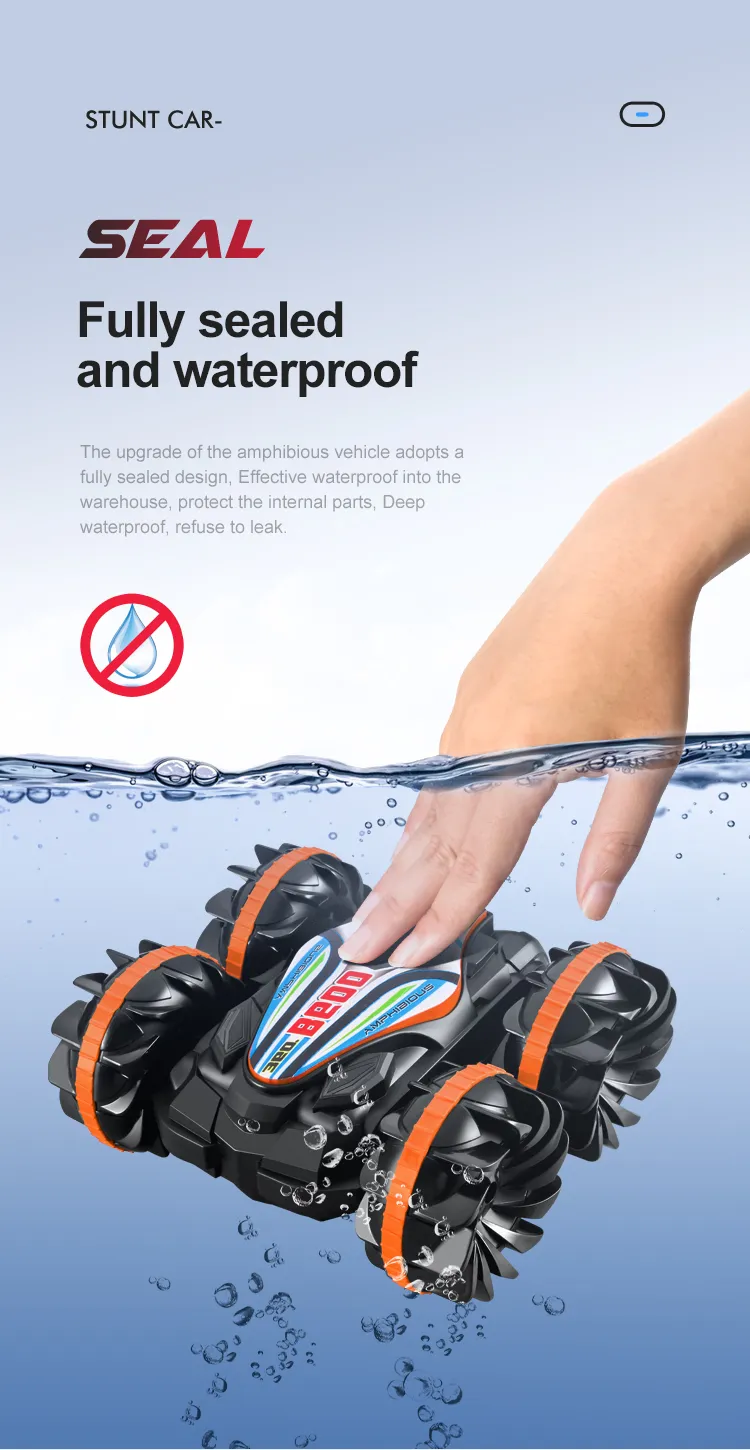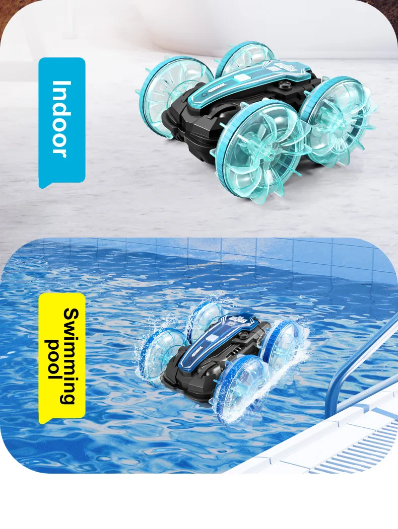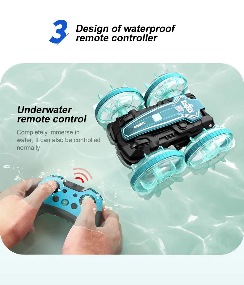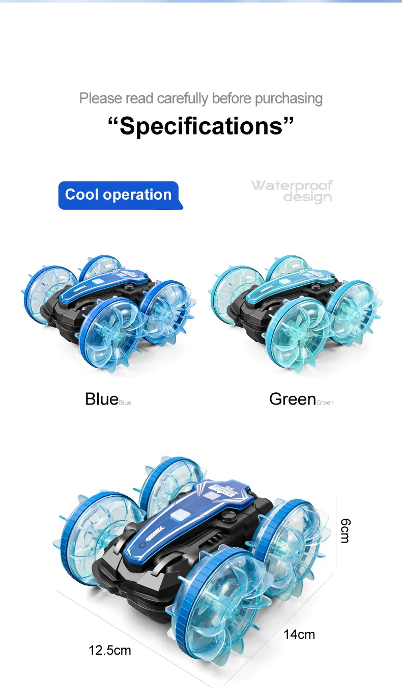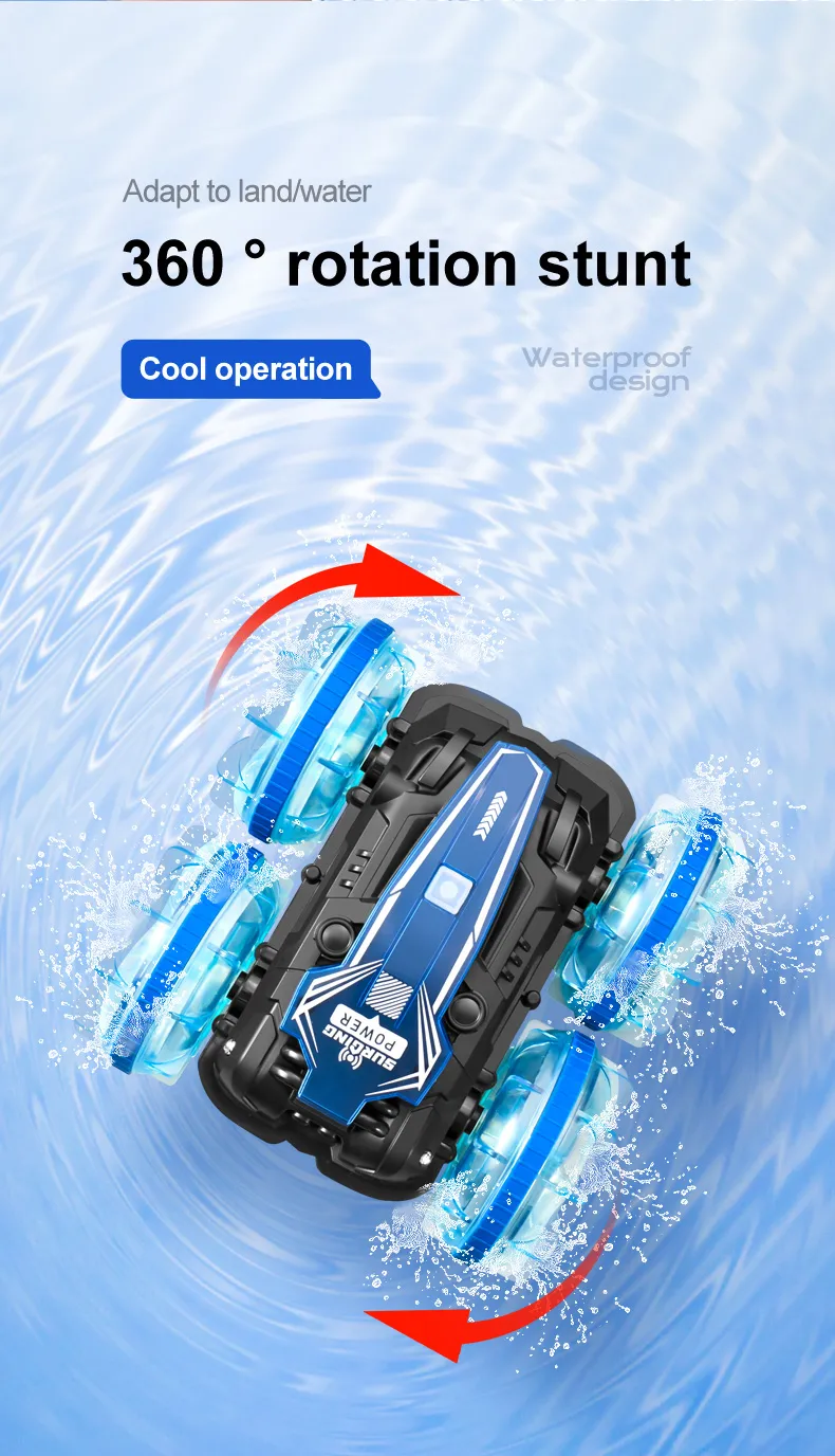Functions: Forward/Backward,Turn Left/Right, Double-sided Driving, 360° Rotation, Water and Land