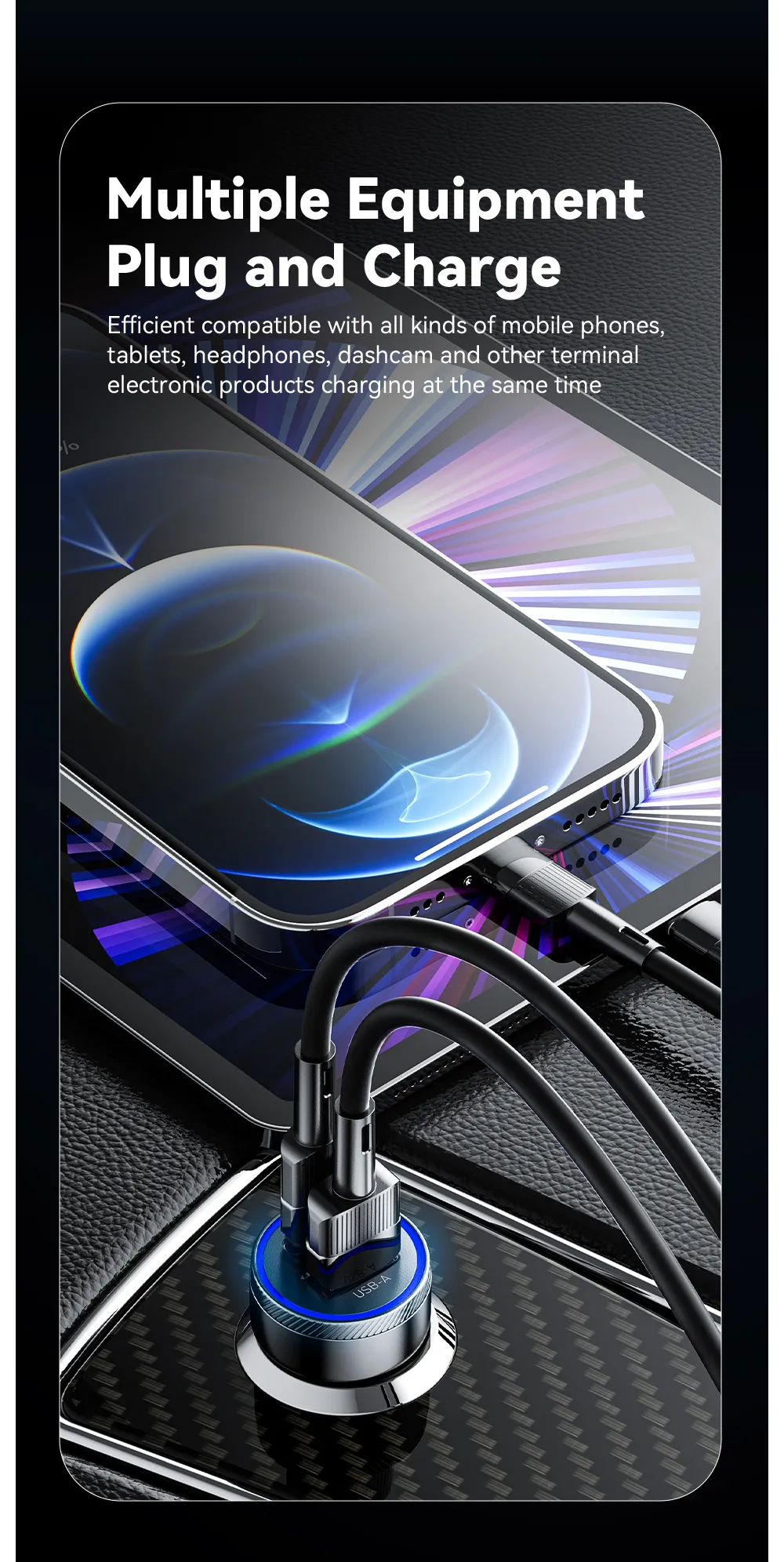 1. Two-port car charger, small and delicate, intelligent shunt, safe use