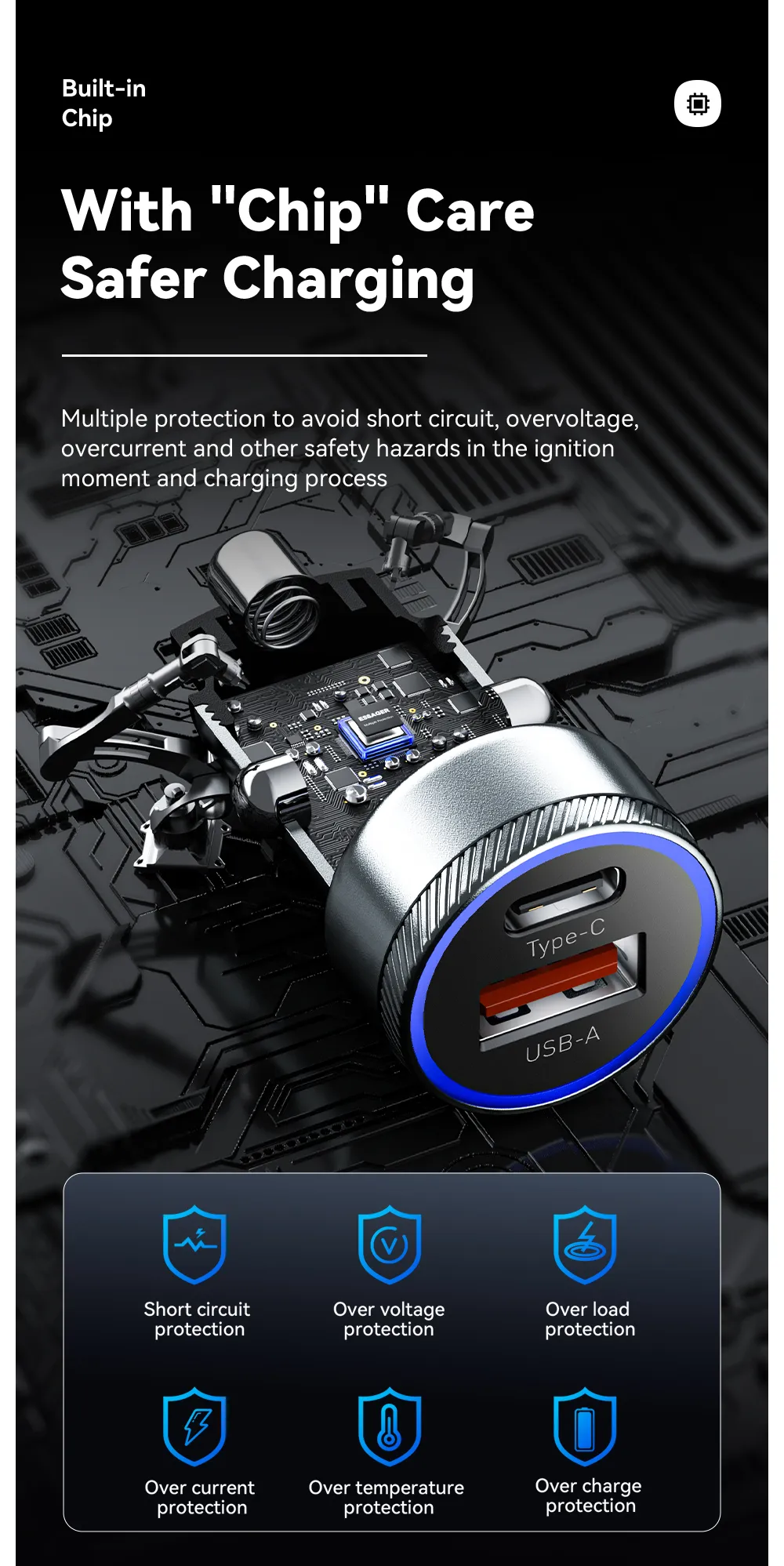 5. Built-in over charge, overload, short circuit, over current, over temperature, over voltage protection chip, intelligent protection is safer