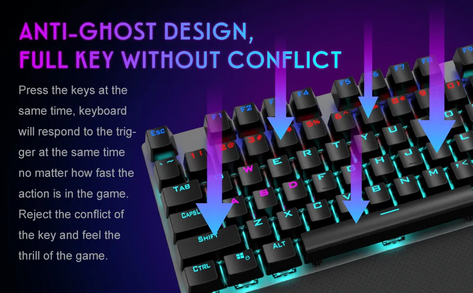 Press all keys at the same time, the keyboard will trigger at the same time, and it can also respond quickly in the game