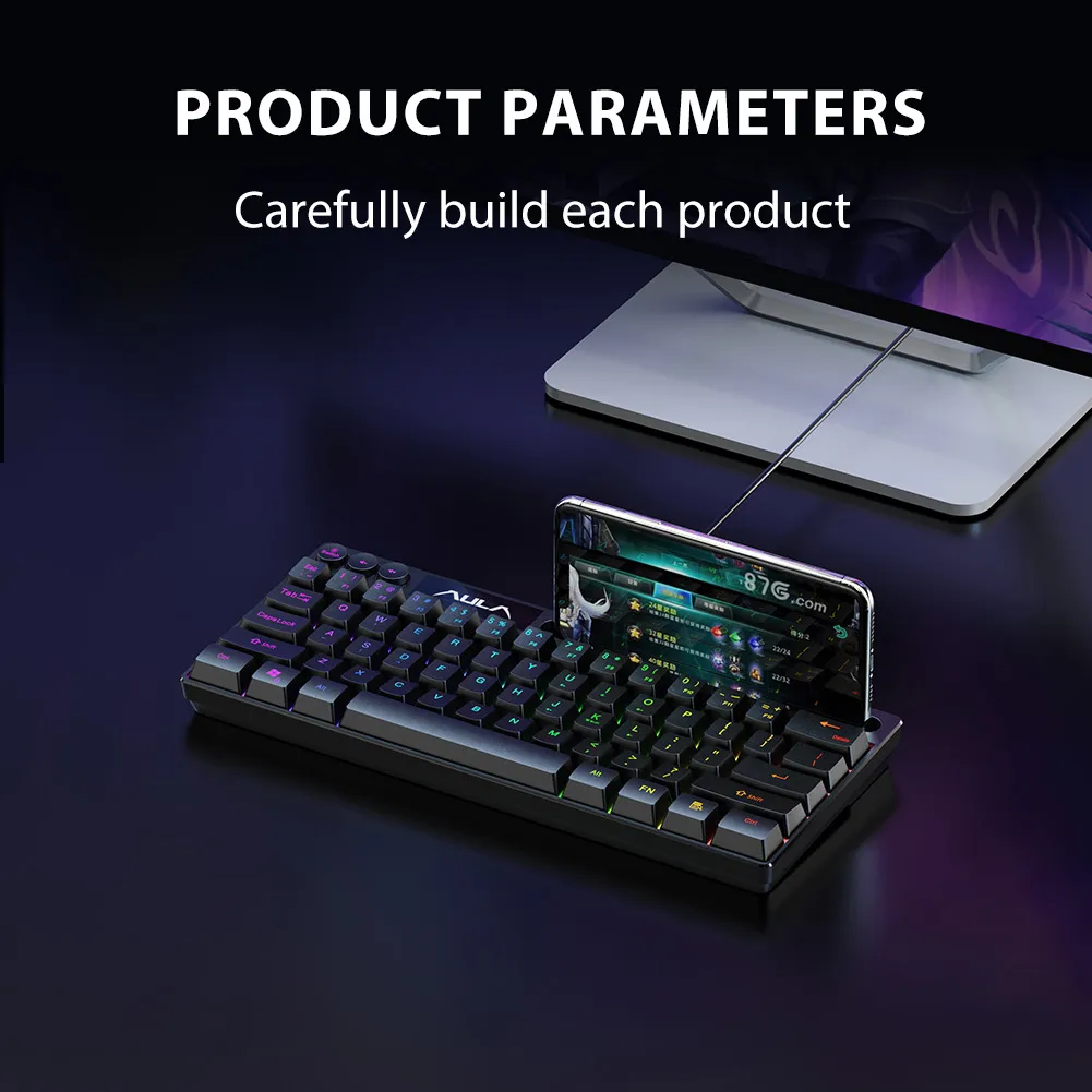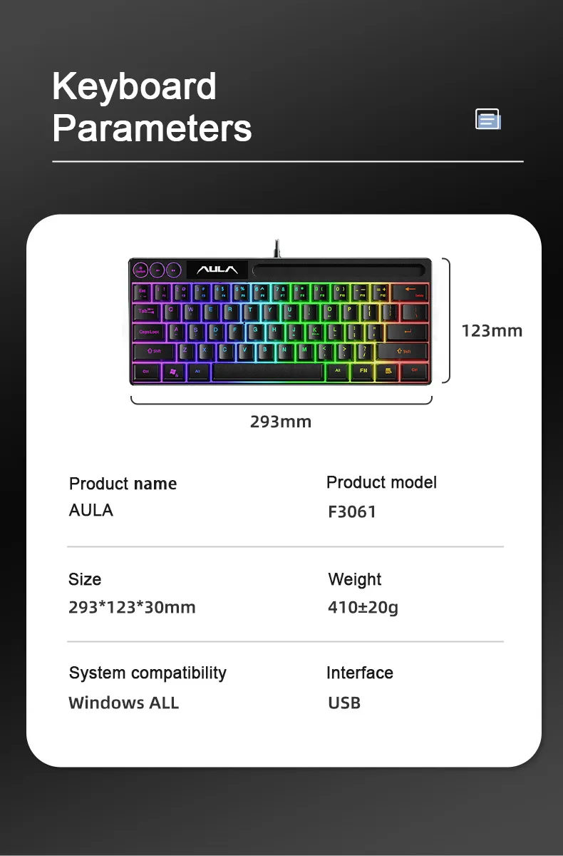 Features:Ultra-Portable Design:mobile phone groove design Connection interface:USB Connector Keyboard Size :29.3*12.3*3 cm Item Weight :0.41g Layout: 61 Key Keyboard Layout