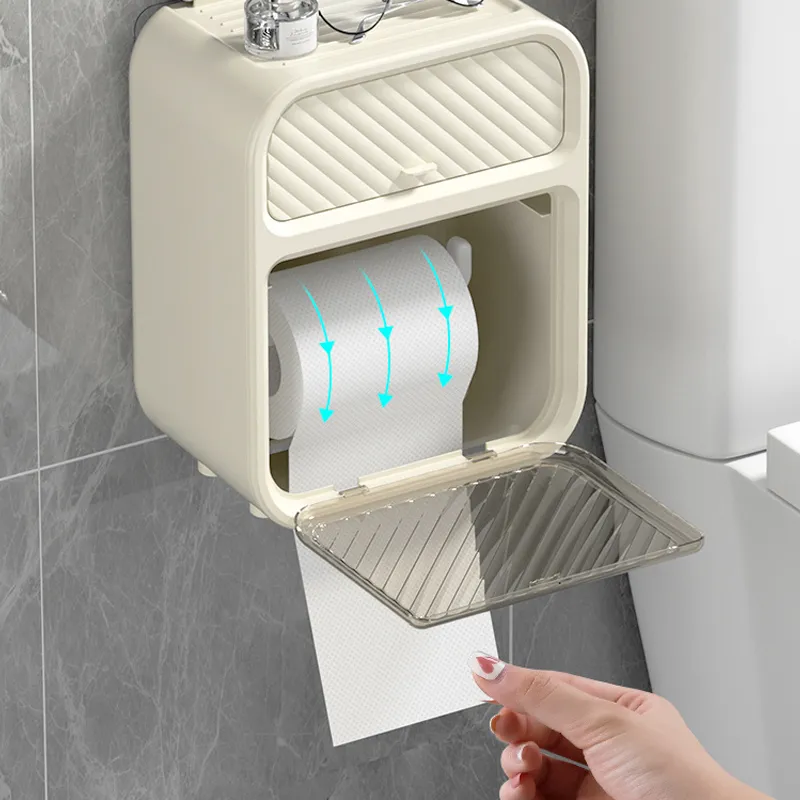 โฆฟ The top of the wall mounted toilet paper roll holder can hold mobile phones, tablets, wet wipes, glasses, and other small items. It is not only a toilet paper box but also a storage box, which can store intimate items.
